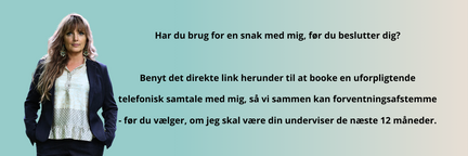 Samtidigt har du mulighed for at blive eksamineret med ekstern censor, hvilket kan tilkøbes særskilt. Din specifikke eksterne censor vil blive valgt intuitivt af mig.